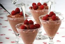 Till dessert, chokladmoussé med hallon.